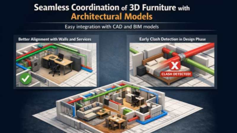 Furniture rarely exists in isolation. It must align with architectural layouts, structural elements, and building services.